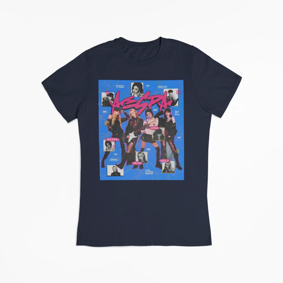 Their unisex design makes them easy to pair with any outfit—ideal for everyday wear, concerts, meetups, or simply showing your love for Aespa. Each shirt features vibrant, high-quality Aespa-inspired prints that bring a bold, stylish edge to your collection.